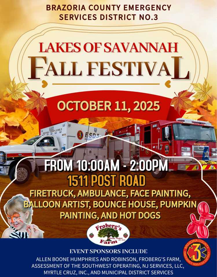 Brazoria County Municipal Utility District No. 21 (BCMUD 21) and Brazoria County Municipal Utility District No. 22 (BCMUD 22) collectively make up the approximately 1,250 acre master-planned community of Lakes of Savannah. Lakes of Savannah is primarily located in western Brazoria County, with a small portion in eastern Fort Bend County. Click on the map below to find the homepage for your MUD.